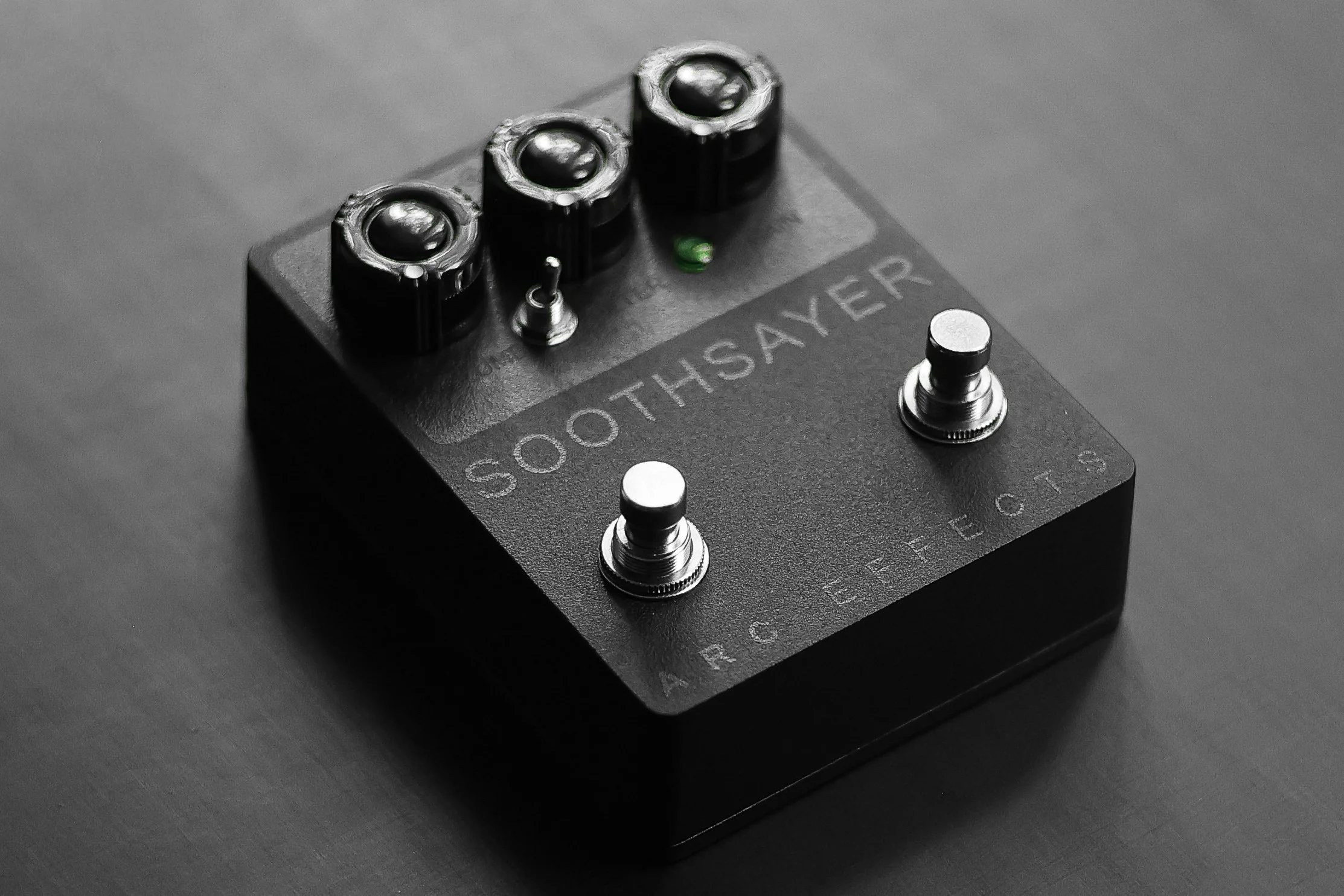 Custom Shop Translucent Red Soothsayer with Black Sov-Style Knobs and a smoother volume and gain taper **Please note that this pedal has a very minor cosmetic imperfection above the “S” in ARC Effects**
